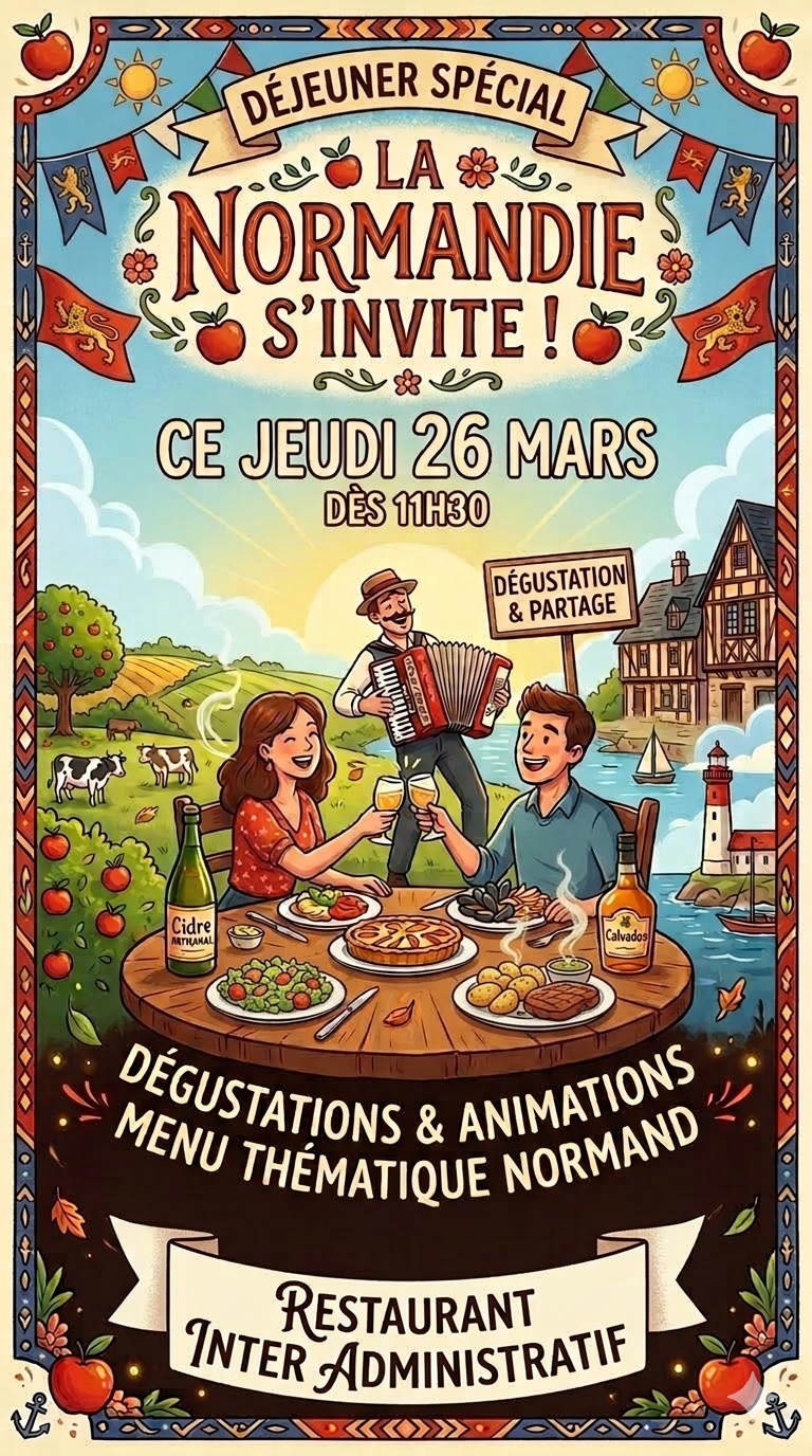 Menu du 26 mars 2026 spécial Normandie au RIA d’Agen