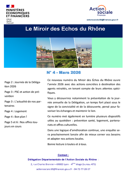 Pour tout renseignement complémentaire vous pouvez contacter la délégation à l’adresse : actionsociale.69@finances.gouv.fr