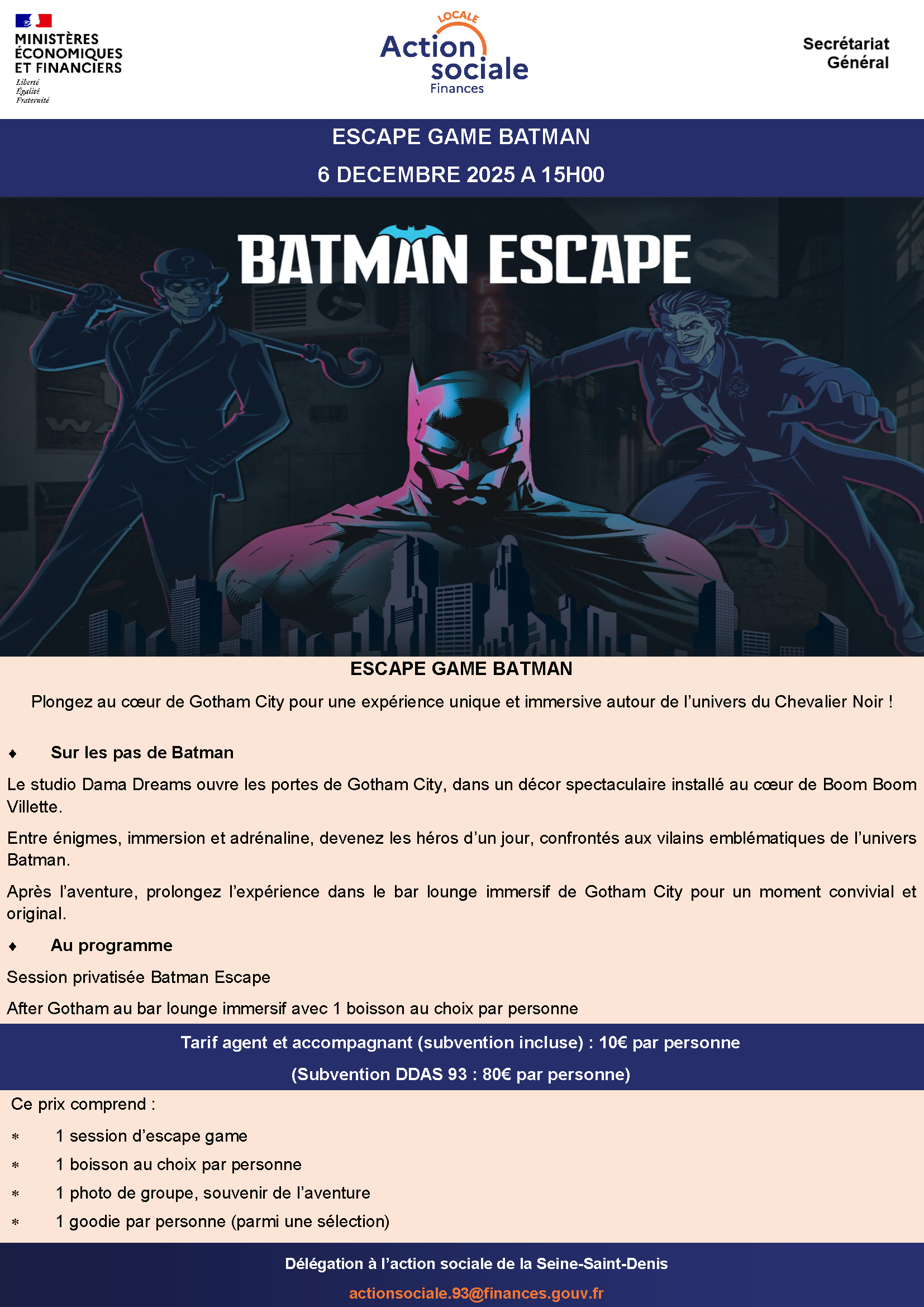 Pour tout renseignements : Délégation à l’action sociale actionsociale.93@finances.gouv.fr