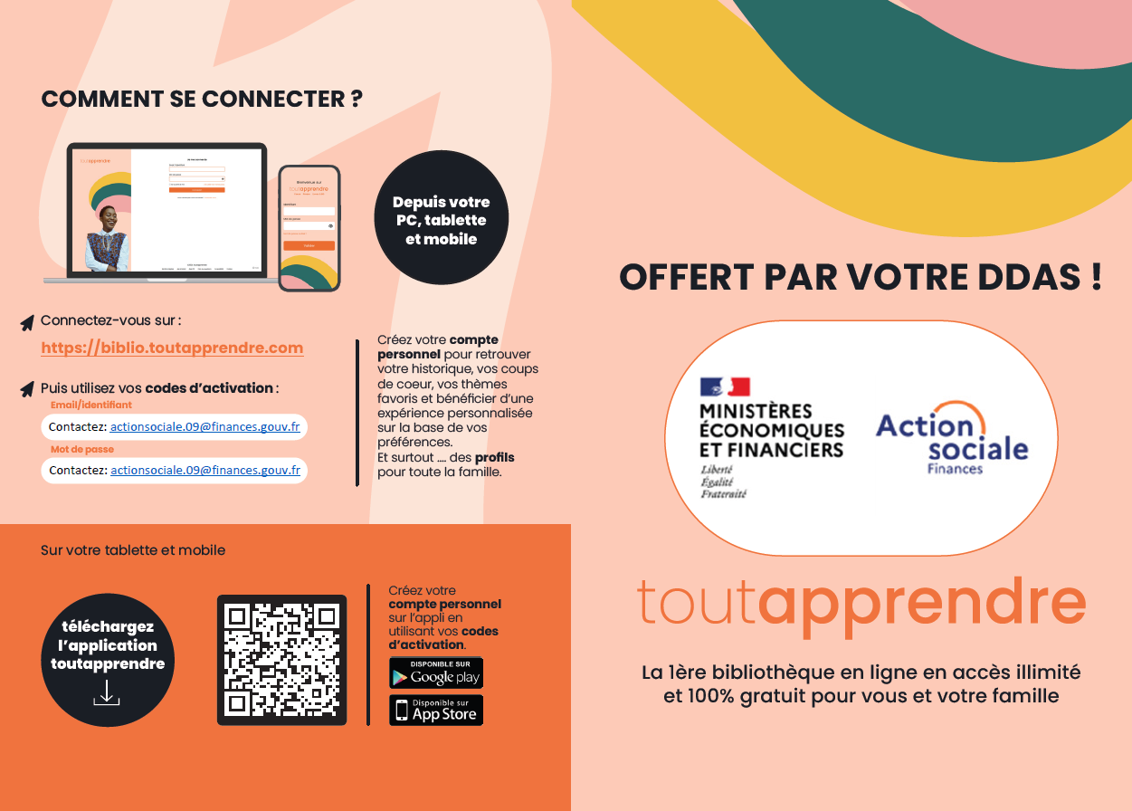 un abonnement à TOUT APPRENDRE, la 1ère bibliothèque en ligne en accès illimité et 100% gratuit pour vous et votre famille : https://biblio.toutapprendre.com