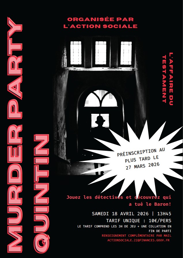 Tarif 10€/personne. Les modalités d’inscription ont été envoyées sur vos BALP. Si vous n’avez pas reçu le courriel, n’hésitez à prendre contact avec la déléguée au 02 96 68 15 01 ou par courriel actionsociale.22@finances.gouv.fr