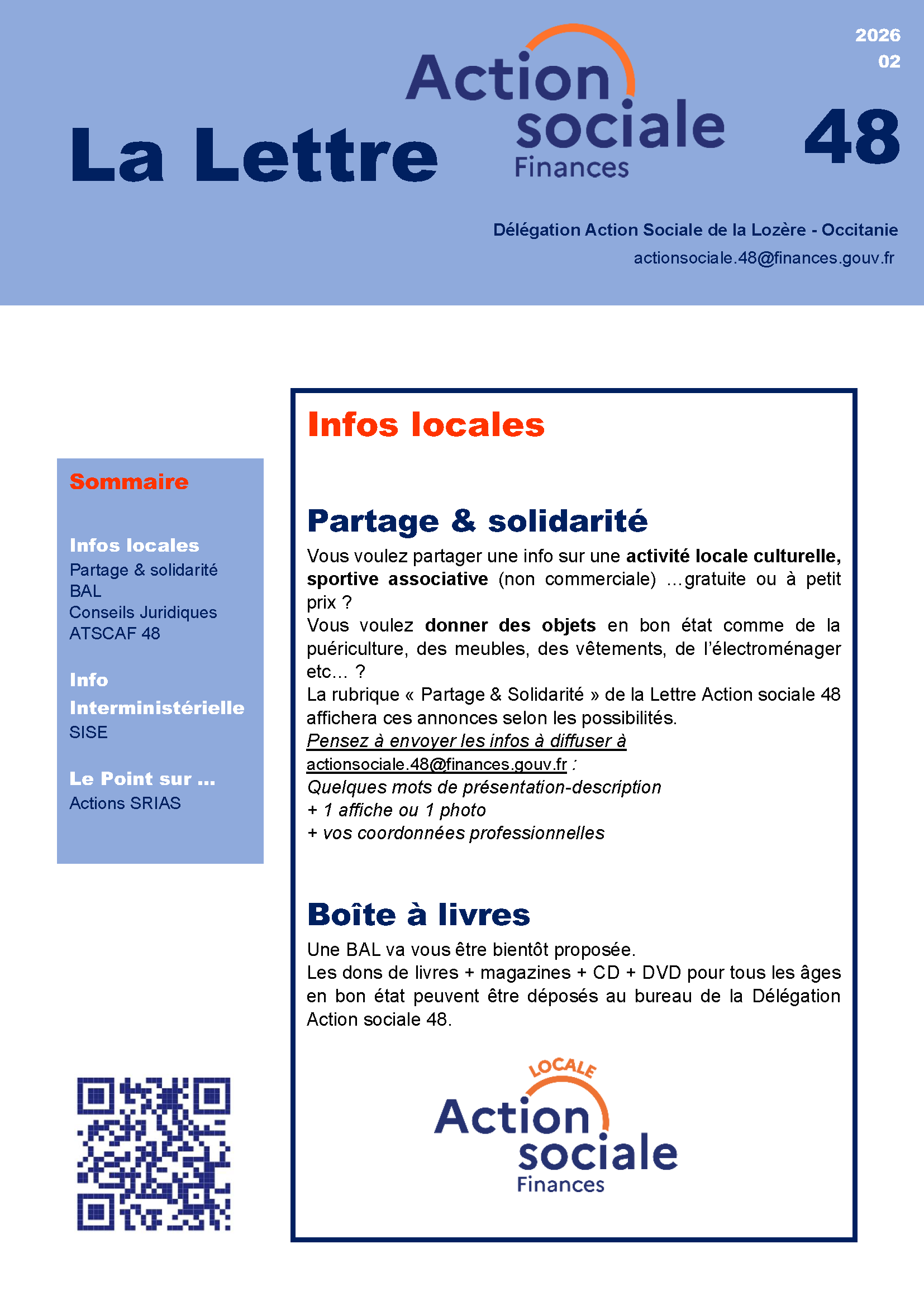 La Lettre Action Sociale 48 - février 2026 au sommaire notamment : conseils juridiques gratuits, ATSCAF, SRIAS Occitanie