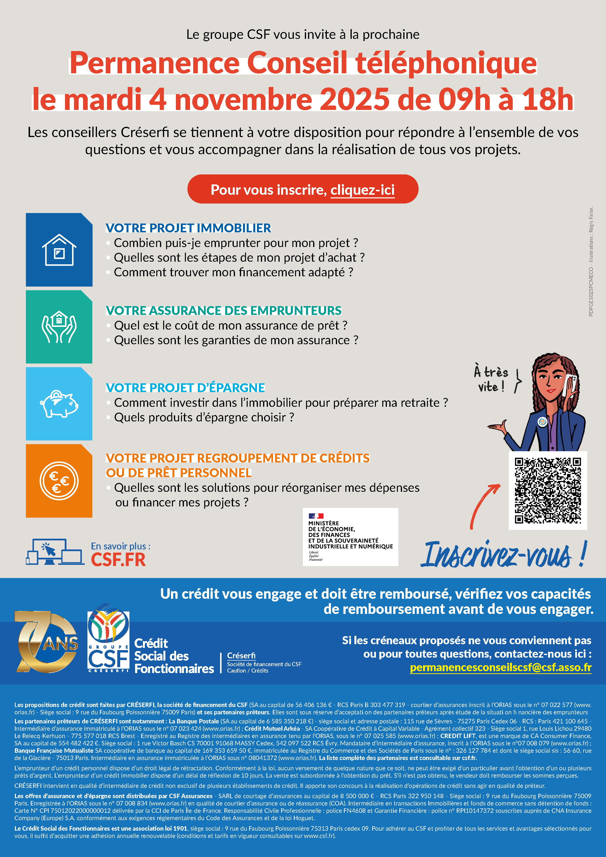 Le groupe CSF vous invite à la prochaine Permanence Conseil téléphonique le mardi 4 novembre 2025 de 09h à 18h